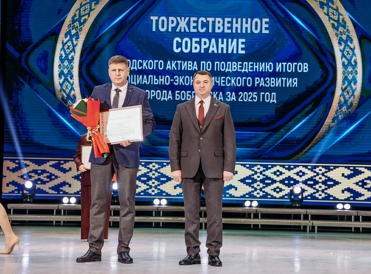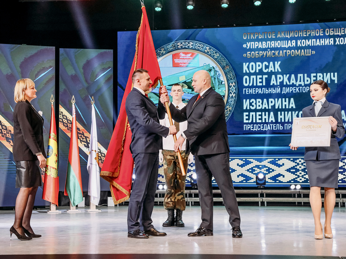 The 1st Degree Diploma as the competition winner and the Honorary Banner of the Bobruisk City Executive Committee for achievements in industrial development in 2025 were awarded to the OJSC «Holding Management Company «Bobruiskagromash», represented by Director General Oleg Korsak.